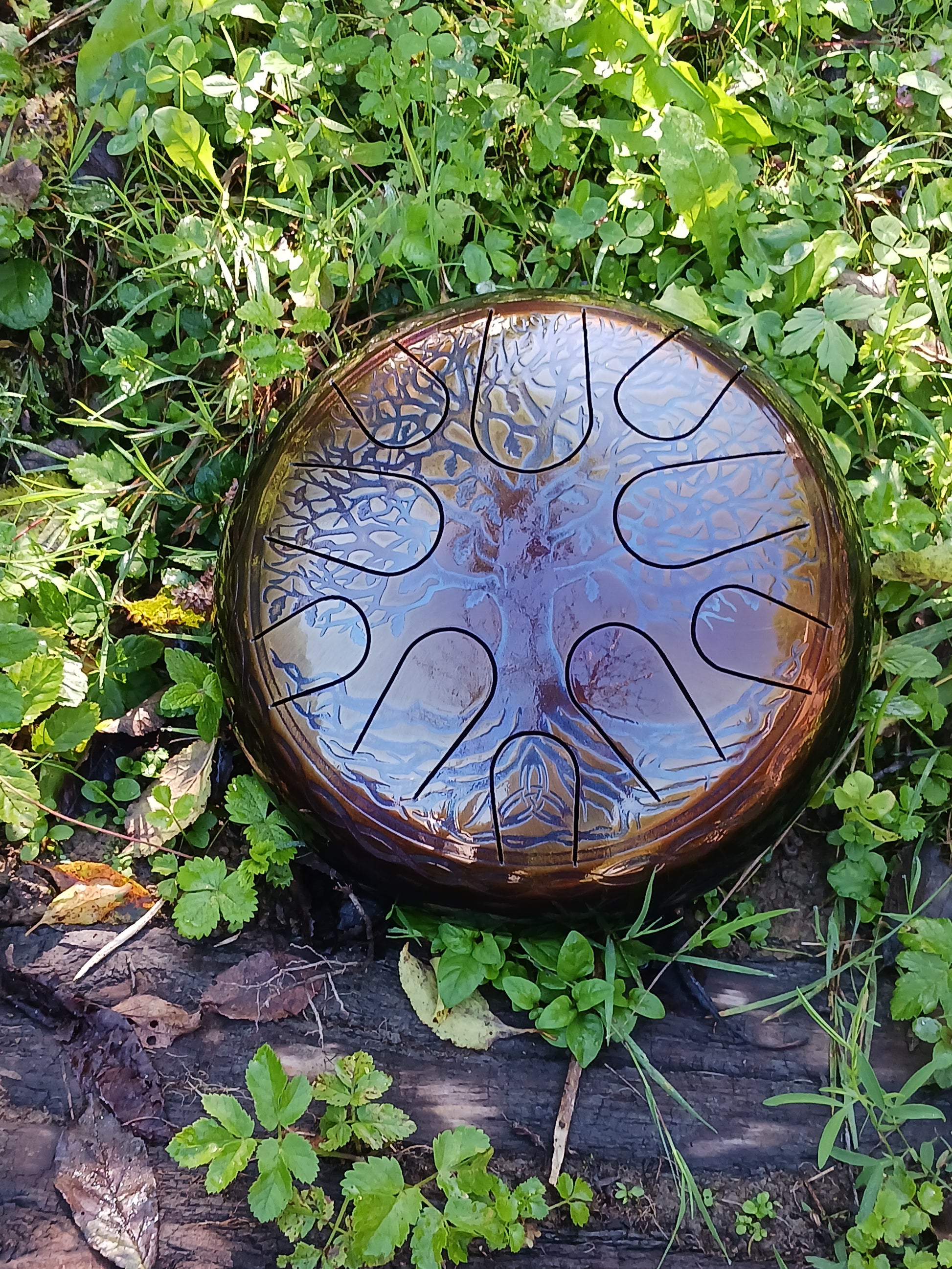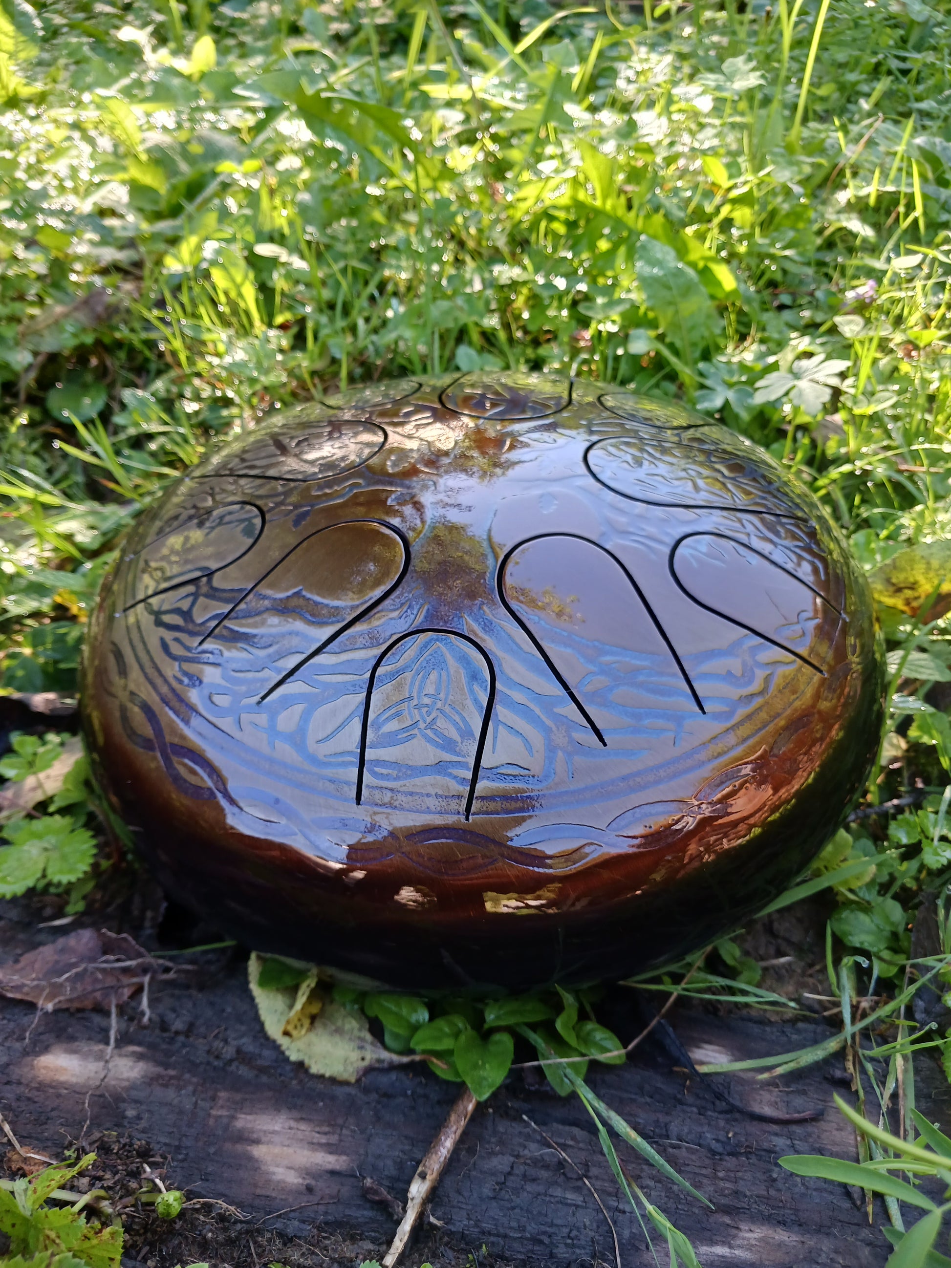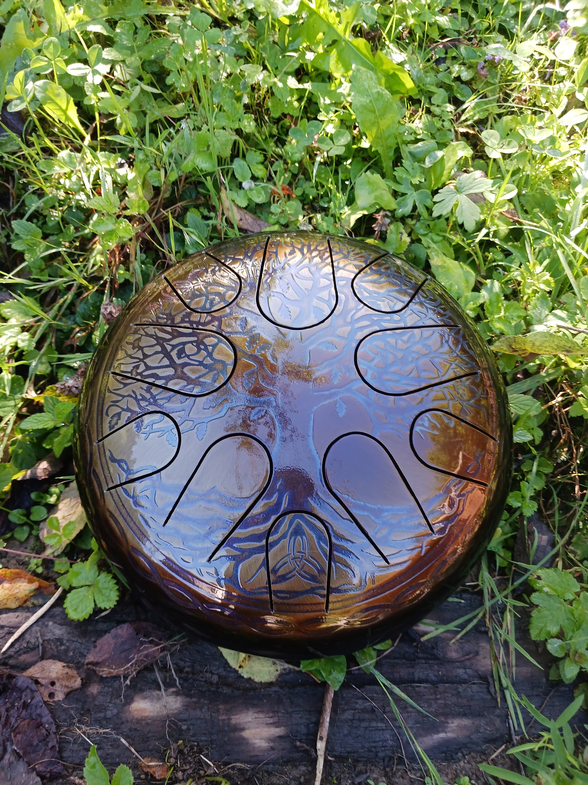 Handmade 10" tank drum tuned in A minor. 432hz. Mallets and bag included.